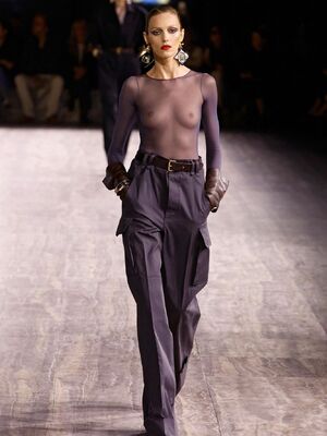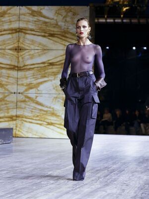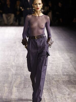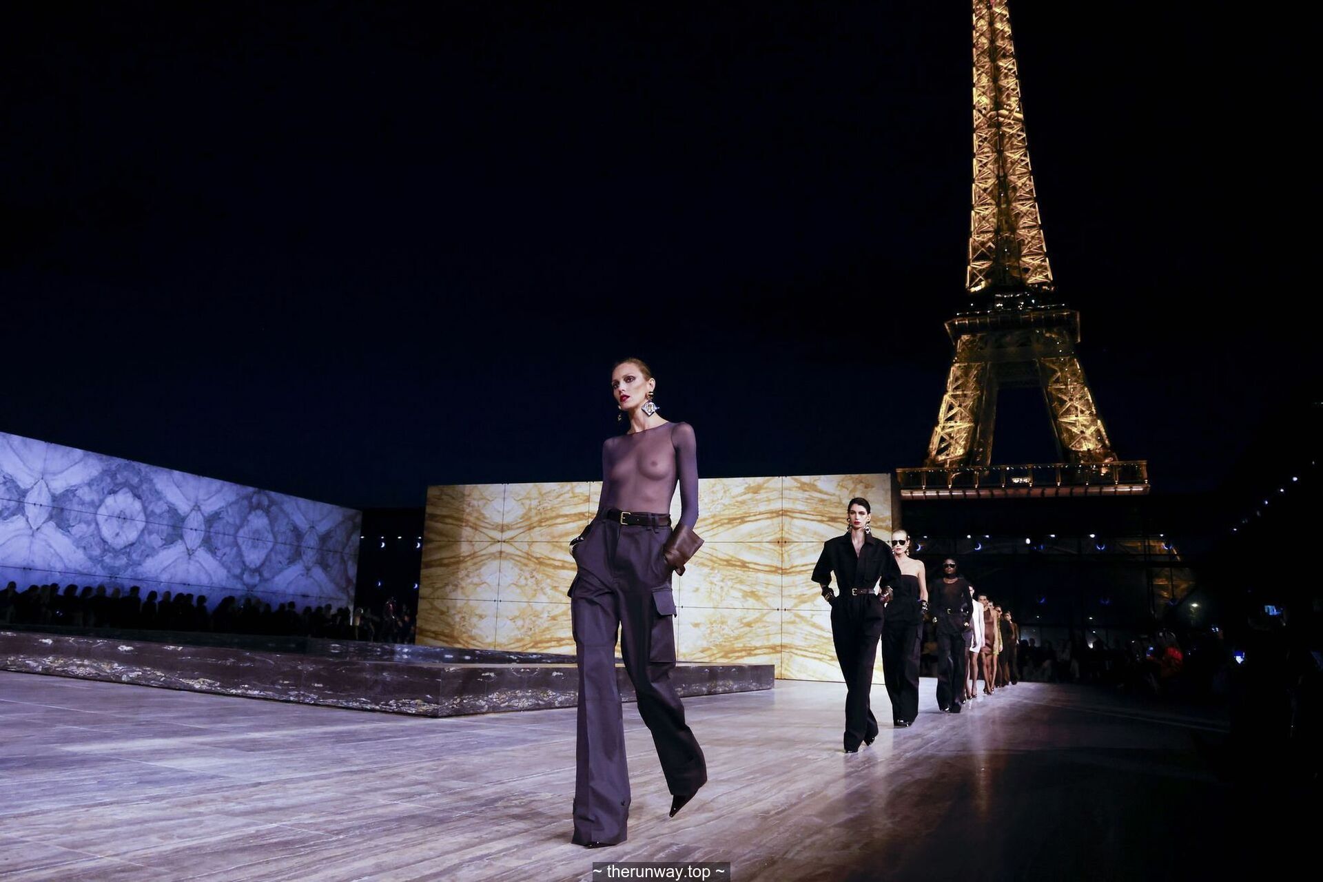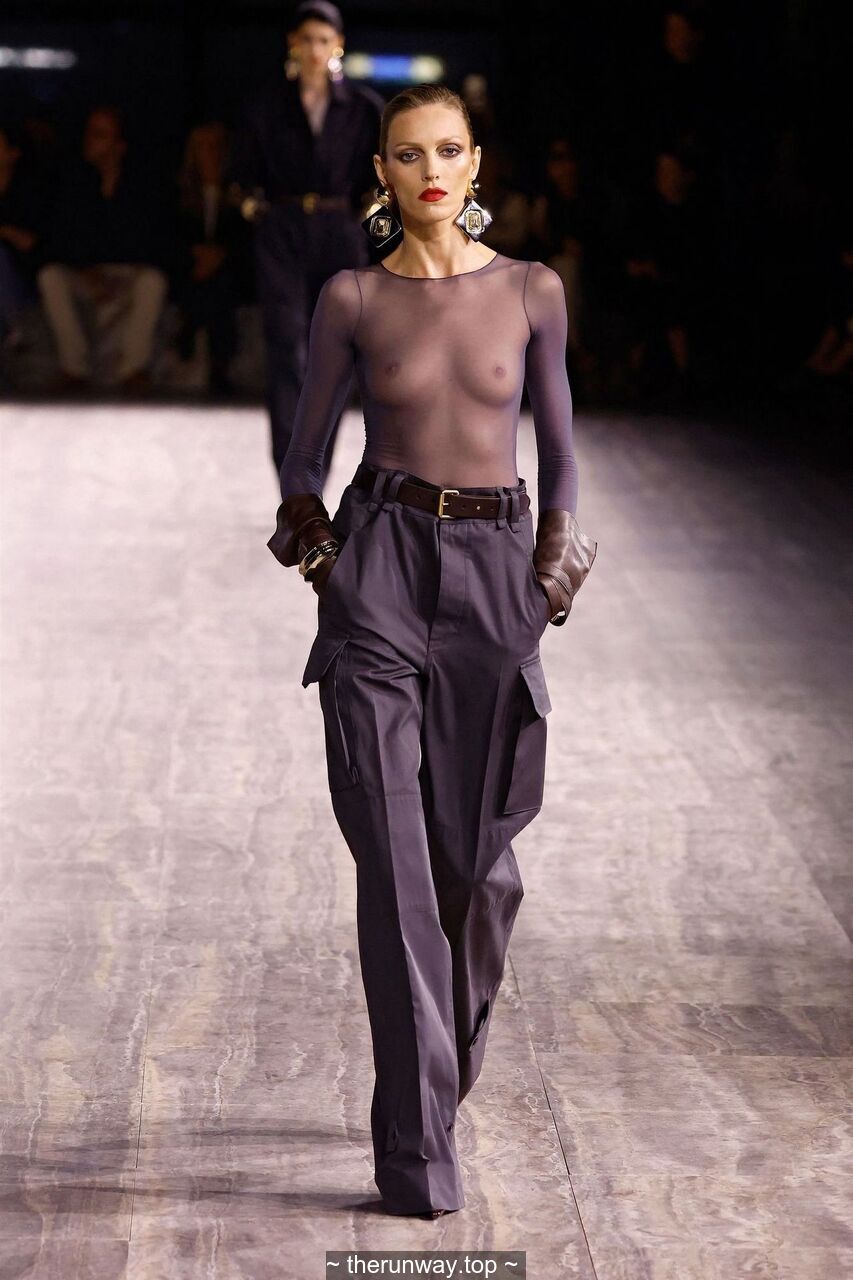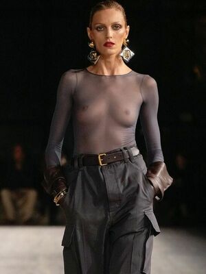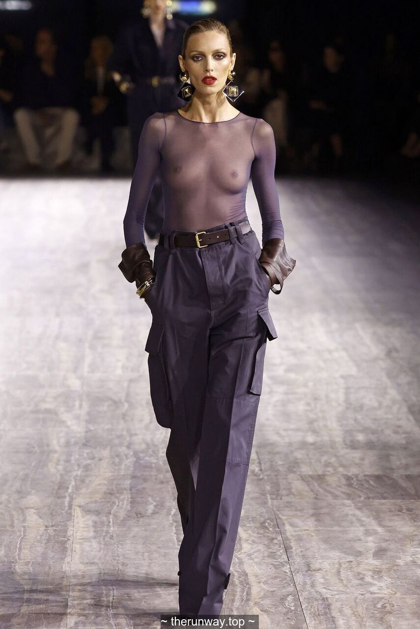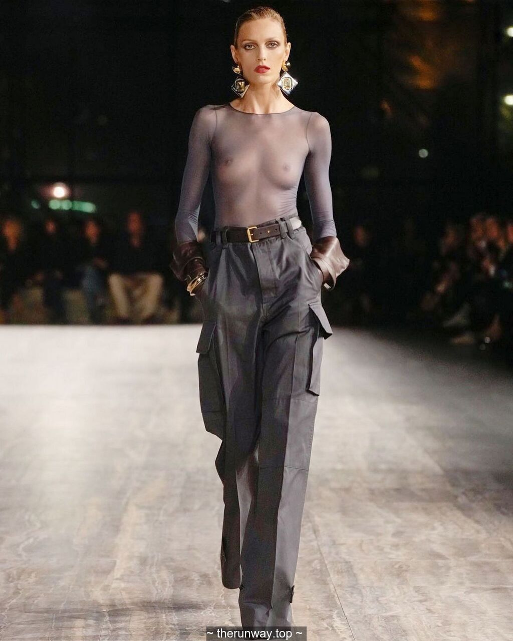 Anja Rubik braless in see through top at the Saint Laurent Fashion Show in Paris This entry was posted 2025-Oct-27 in: Anja Rubik ← Sui He walks runway at Victorias Secret Fashion Show